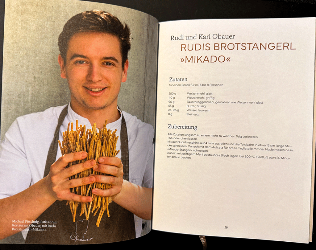 Die Obauers aus Werfen stellen Rudis Brotstangerl „Mikado“ vor. Ein Produkt aus Weizenmehl glatt, Weizenmehl griffig und Tauernroggenmehl. Das genaue Rezept steht natürlich im Buch.