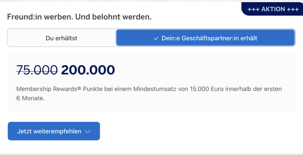 9.Nov. Nach 27.000 € Umsatz bekam ich statt der versprochenen 75.000 Punkten nur 50.000 Punkte. Obwohl ich 2x den Booster aktivierte (privat wie Business – jeweils 15 €), habe ich insgesamt 78.000 Punkte. Müsste ich nicht 87 bzw. 97.000 Punkte haben?