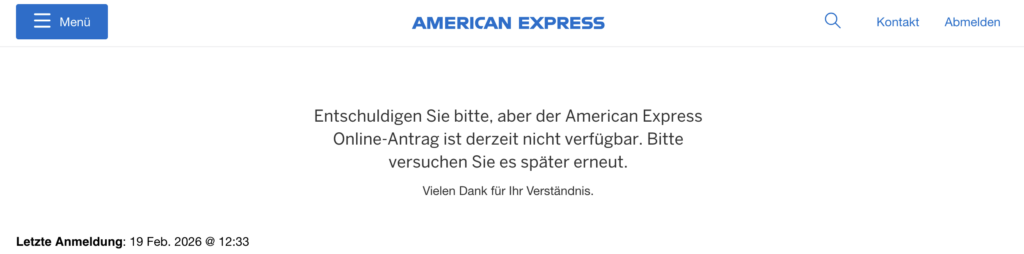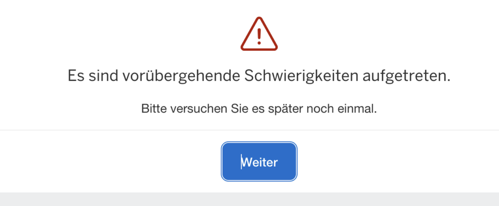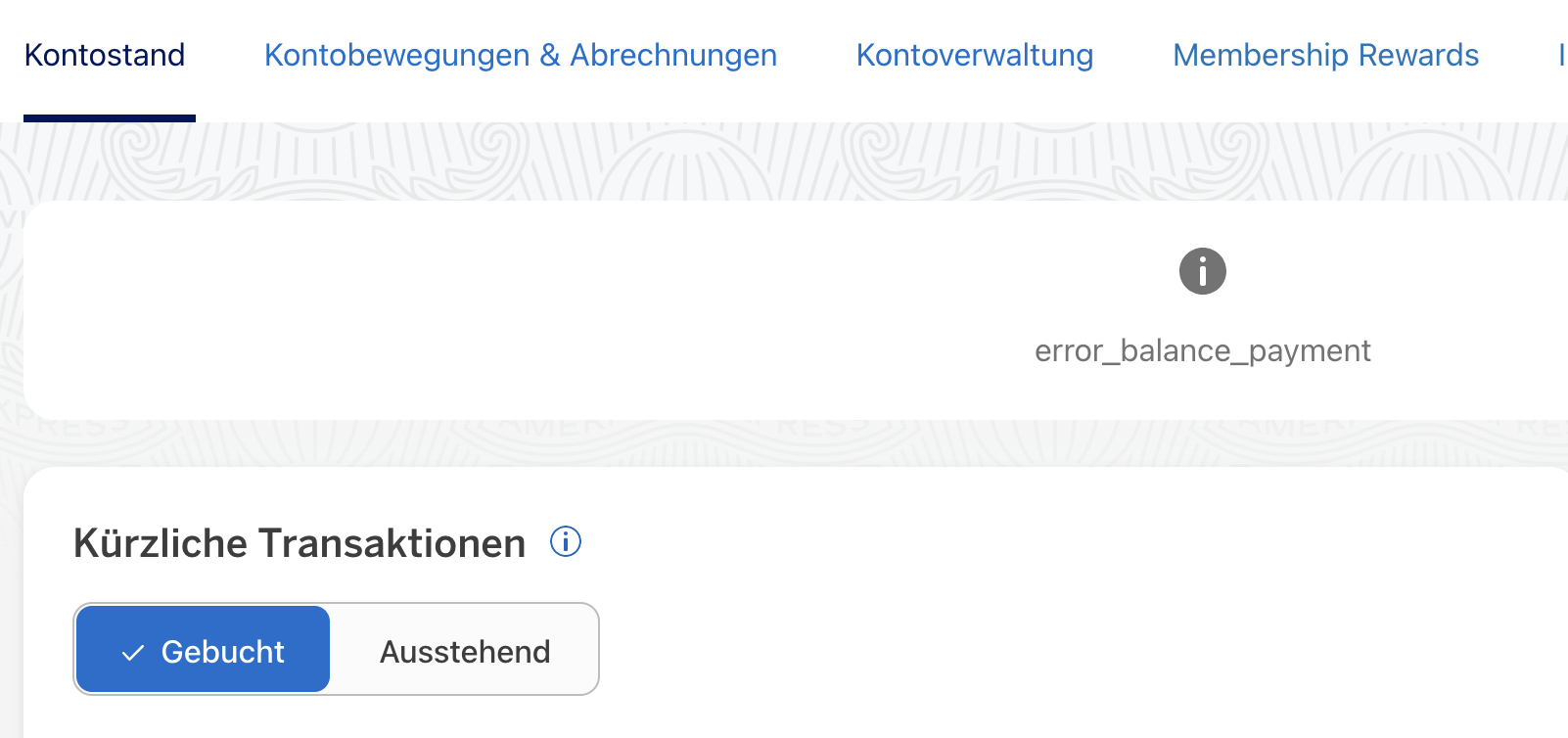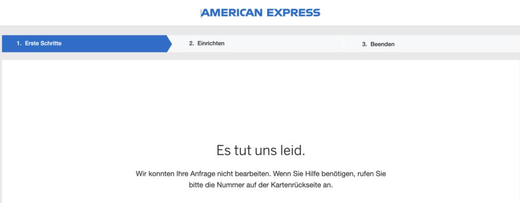 Und die Webseite von Amex ist extrem unübersichtlich gemacht. Gefühlt jeden 2. Klick kommt eine Fehlermeldung dieser Art: