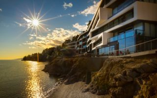 Designhotel Navis, Opatija Riviera, Kroatien: Außergewöhnliche Architektur in spektakulärer Lage: das nun auch per Boot erreichbare Designhotel Navis. Mittlerweile auch bei den europäischen Spitzengastronomen Jeunes Restaurateurs /JRE) aufgenommen, starten Junior-Patron Davor Kapetanović und Küchenchef Tino Sinožić mit dem Restaurant voll durch.