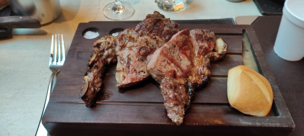 Leonardo bestand darauf, das Rib Eye von der Rechnung zu nehmen, ebenso so die Pommes, so dass wir statt ca. 170 USD nur noch 120 USD incl. Trinkgeld zahlten.