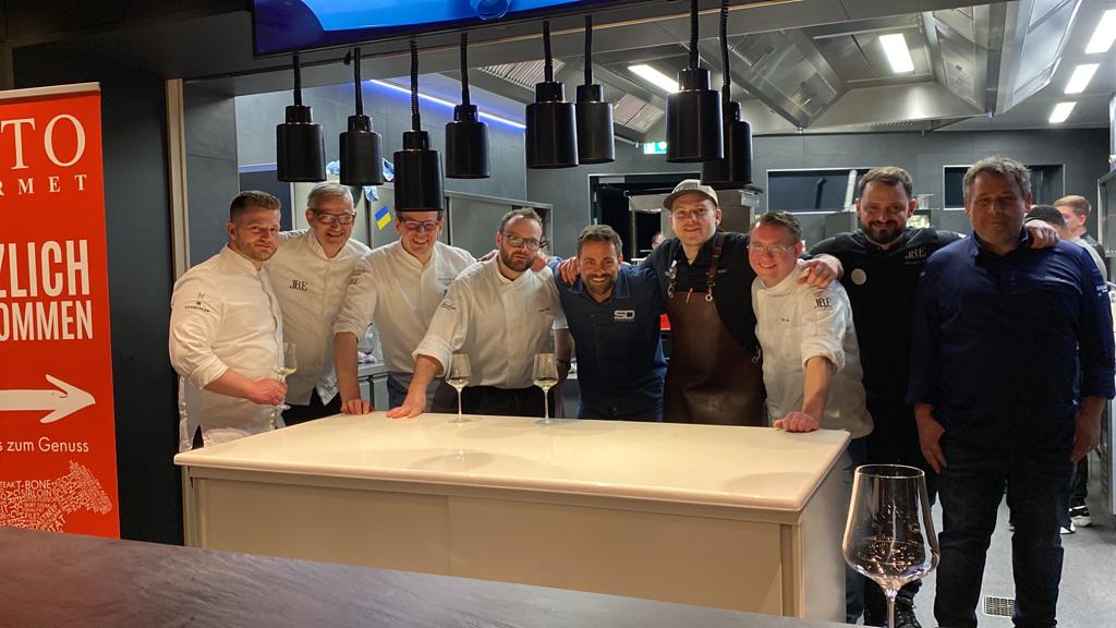 Fast 70 Gäste hatten sich im Restaurant von Alexander Wulf, Ronny Schreiber und Marcel Kokot zusammengefunden, um Geld für den guten Zweck zu sammeln: Zwischen 200 und 500 Euro kosteten die Eintrittskarten pro Person. Für das leibliche Wohl der Gäste sorgten mehrere Mitglieder der Jeunes Restaurateurs (JRE). Die Spitzenköche Jockl Kaiser (Wirtshaus Meyers Keller, Nördlingen), Philipp Wolter (PHOENIX Restaurant & Bar, Düsseldorf), Oliver Röder (Burg Flamersheim, Euskirchen), Christian Mittermeier (Villa Mittermeier, Rothenburg ob der Tauber) und Steffen Disch (Raben Horben, Horben) waren angereist, um ihren Kollegen Alexander Wulf zu unterstützen. Für die musikalische Untermalung sorgte der ukrainische Violinist Edgar Lorenz. „Uns war es wichtig, ein Zeichen zu setzen und den Menschen aus der Ukraine zu helfen“, sagt Alexander Wulf, der selbst in Sibirien geboren ist. Wulf, der sich als „weltweit einziger Sternekoch mit russischen Wurzeln“ bezeichnet, hilft aber nicht nur in seinem Restaurant, sondern auch privat. So hat er vor kurzem zwei ukrainische Familien bei sich zuhause aufgenommen.
