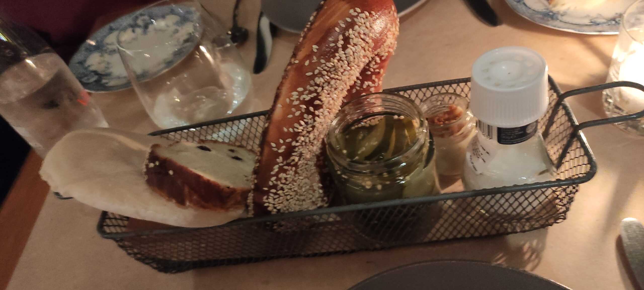 Jetzt kam sehr wenig, aber teilweise recht gutes Brot und Schmalz, sowie eingelegte Gewürzgurken. Wir bestellten und baten darum, dass die Gerichte hintereinander und nicht zusammen kommen, da wir alles teilen möchten. Die beiden kalten Gerichte könne sie doch zusammenschicken, sagte sie, was ich abnickte.