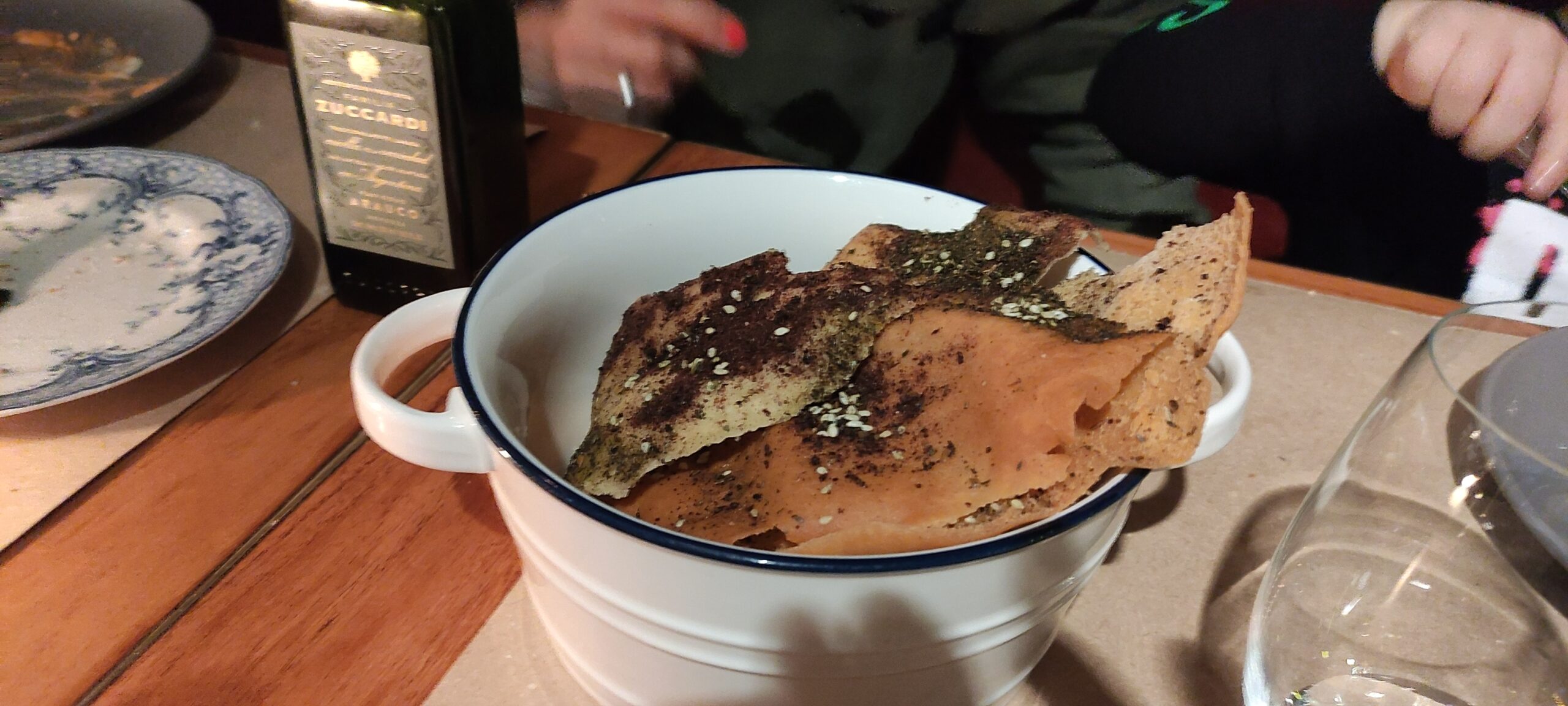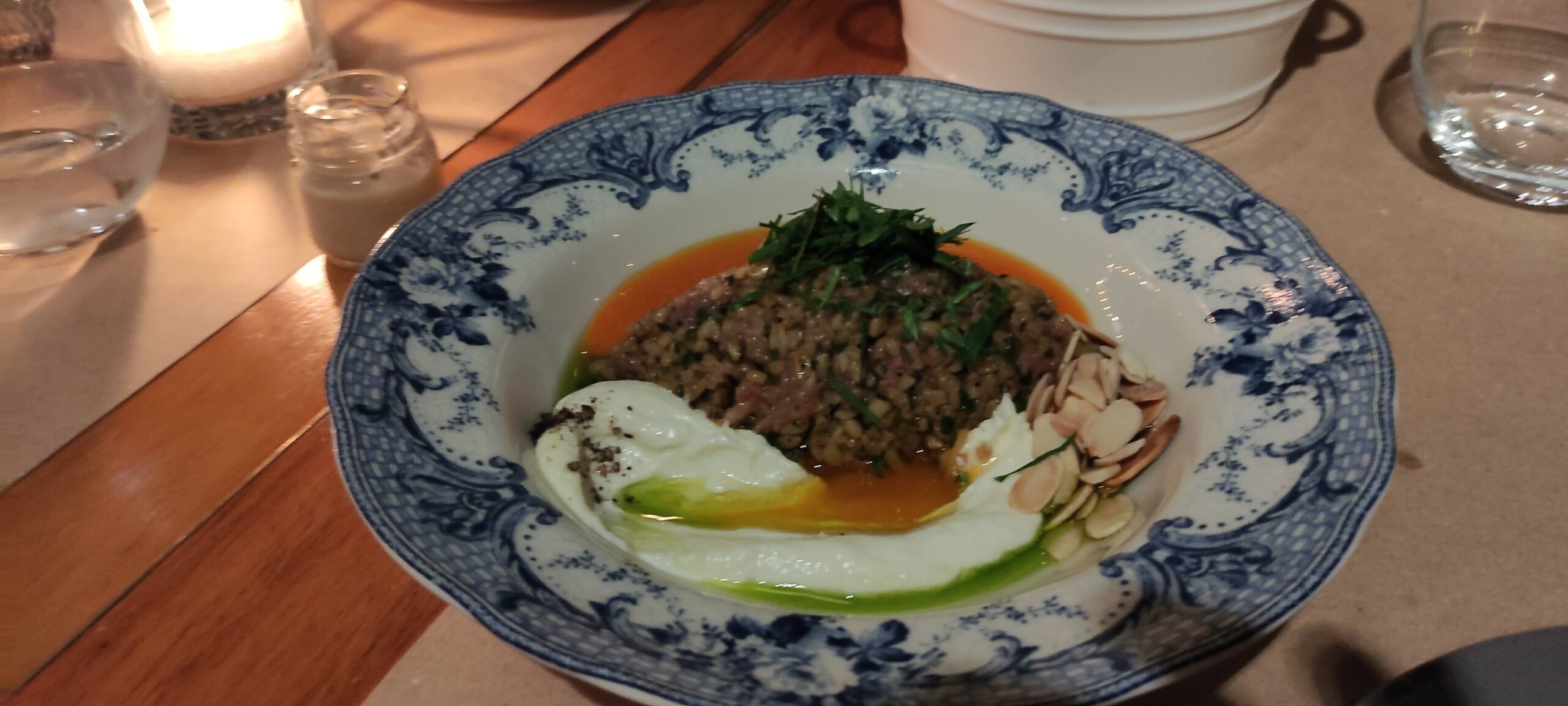 Dezemeber 2021: Wir hatten Baba Ganush (okay), Shrimps Muhamara (gut), Shishbarak (Ravioli – sehr gut) und Bureka (Kartoffel-Trüffel Auflauf – okay). Fotos gibt es nicht, weil es zu dunkel war.