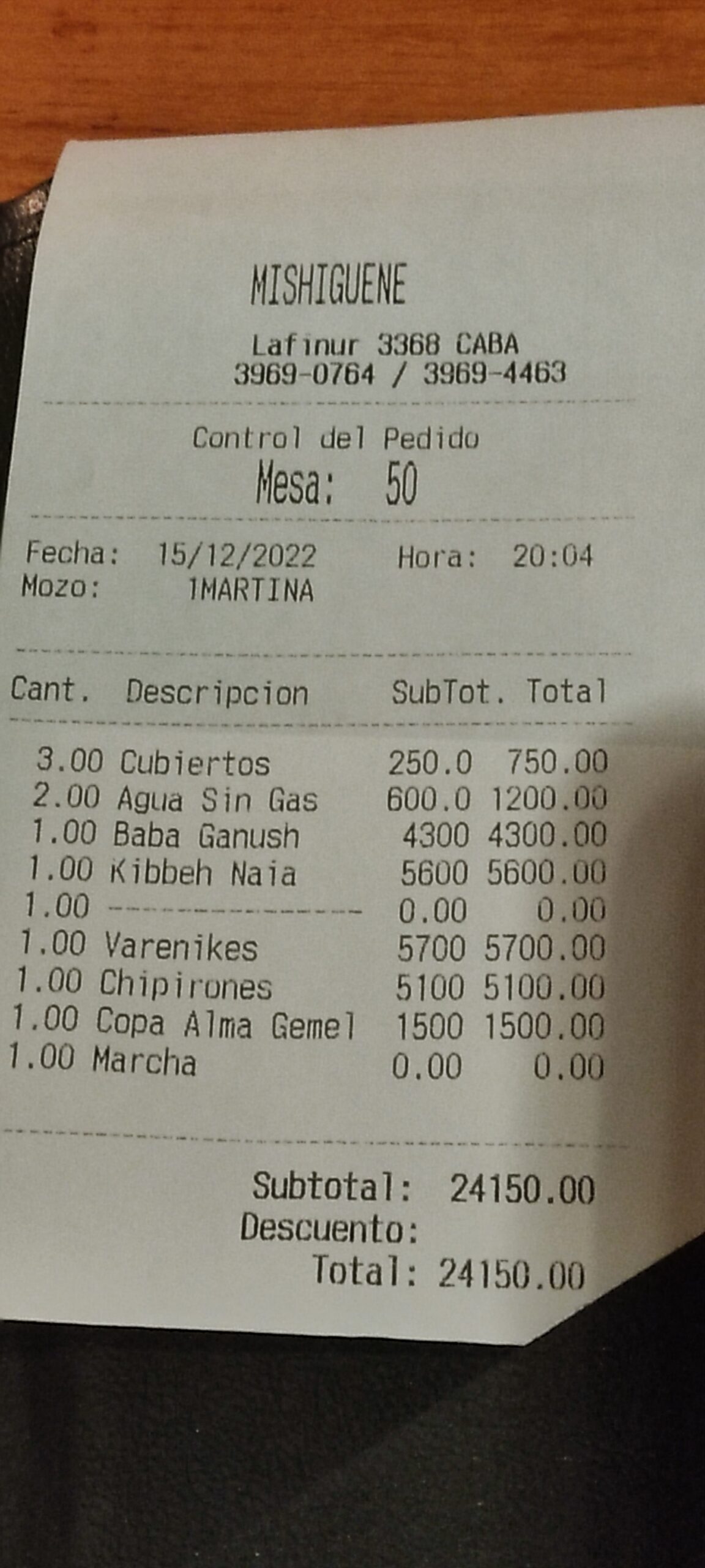 Wir zahlten 9500 ARS (95 USD zu zweit). Wechselgeld bekamen wir nicht raus. Aber der Bezahlvorgang dauert fast so lange wie das Essen, da das Restaurant fürchterlich unorganisiert ist. Aber nett sind sie. Nochmal hin? Ja, vielleicht, aber nicht so bald. In Berlin würde das Restaurant nicht besonders erwähnt werden, aber in der Schlüterstrasse oder Mitte auch gut laufen.