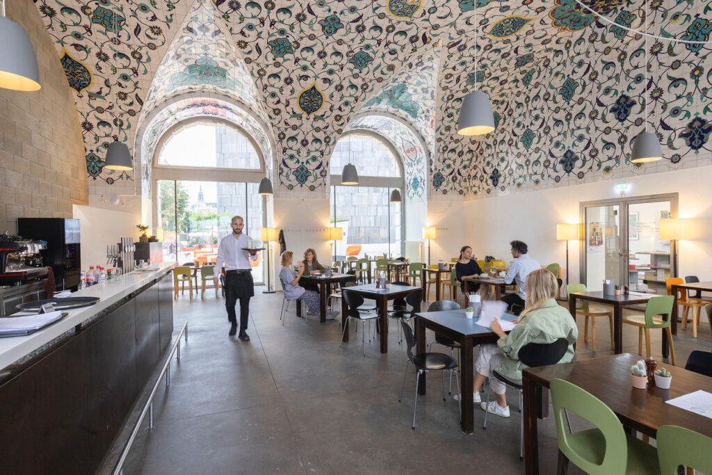Im Wiener MuseumsQuartier haben die beiden Architekt:innen und Pritzker-Preisträger:innen Anne Lacaton und Jean-Philippe Vassal vor vielen Jahren ein Lokal gestaltet, in dem nun das türkische Restaurant Kaan eingezogen ist – passend zu den Mustern der Deckenfliesen der türkischen Künstlerin Asiye Kolbai-Kafalier.