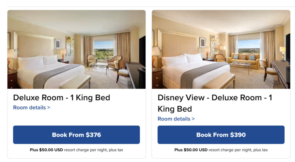 Für die Reservierung werden keine Punkte und keine Gutschrift für Speisen und Getränke gewährt. Die Anzahl der Nächte, die Sie bei uns verbringen, würde sich jedoch erhöhen, um Ihren Diamond Status zu erhalten! Diamond-Upgrades sind eine unserer beliebtesten Möglichkeiten, um treuen Mitgliedern wie Ihnen zu danken! Wenn bei Ihrer Ankunft ein Zimmer verfügbar ist, das eine Stufe über Ihrem Zimmer liegt, würden wir Sie gerne kostenlos upgraden. Wenn Sie genau wissen, welches Zimmer oder welche Suite Sie haben möchten, helfen wir Ihnen gerne bei der Reservierung zu einem vergünstigten Upgrade-Preis vor Ihrer Ankunft! Da Sie ein Deluxe-King-Zimmer gebucht haben, wäre ein Upgrade um eine Stufe eine Verbesserung der Aussicht auf unser Deluxe-King-Zimmer mit Disney View! Wenn Sie dieses Upgrade im Voraus buchen möchten, kostet es $45 pro Nacht!“