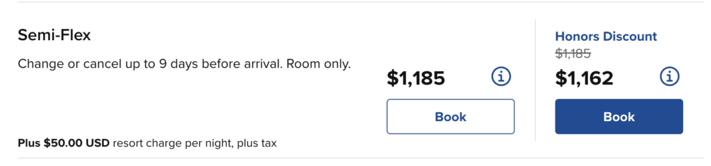 Wow! Über 2600 US $ kommen noch auf die 3700 $ drauf. Die kämen auch auf den Preis der Hilton Webseite, mit Ausnahme Internet und es wird ein Frühstückskredit von 50 US$/Tag gegeben wegen Diamond (also 650 $ weniger, immer noch 1950 $ auf die Hilton direkt Preise)