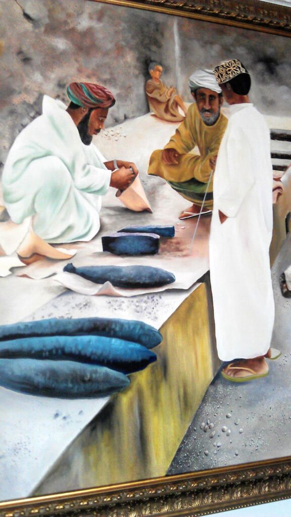 Die regionale Spezialität aus der südlichsten Landesregion Dhofar, die auch für ihre tropischen Obstplantagen bekannt ist, beschreibt eigentlich eher eine Kochtechnik als ein bestimmtes Gericht. Bei dieser Methode werden viele kleine Steine sorgfältig über einem Feuer angeordnet. Sobald die Steine die ideale Temperatur erreicht haben, wird darauf mariniertes Fleisch gegrillt, üblicherweise Kamelfleisch. Die Steine haben besonders wärmespeichernde Eigenschaften und entziehen dem Fleisch, sobald sie mit diesem in Kontakt kommen, schnell die Feuchtigkeit. Nach nur wenigen Minuten ist das Fleisch perfekt gegart, außen knusprig und innen zart.