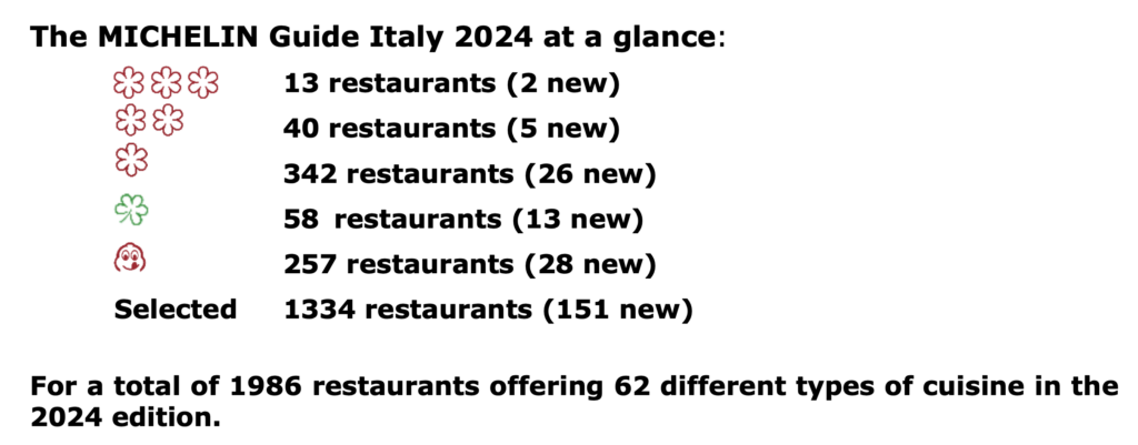 Die wichtigsten Zahlen des MICHELIN Italien 2024