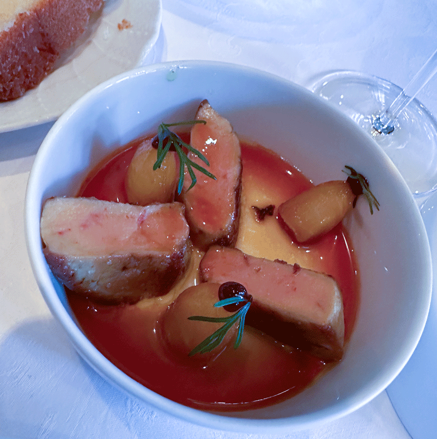 Quantitativ etwas weniger, aromatisch umso überzeugender fiel die Variante der Gänseleber aus dem Menü für meine Frau aus. Auch hier gab es keine Kompromisse was den Geschmack betraf.
