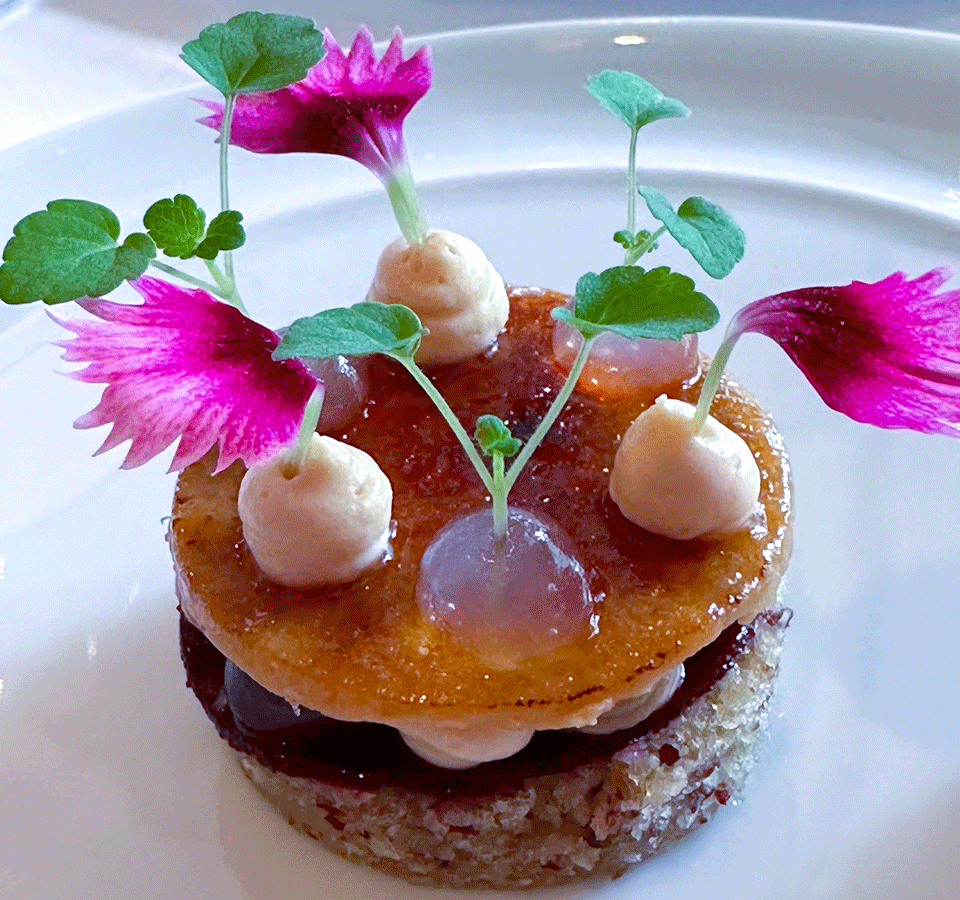 Variation von der Gänsestopfleber mit Fragolino-Trauben und Macadamia