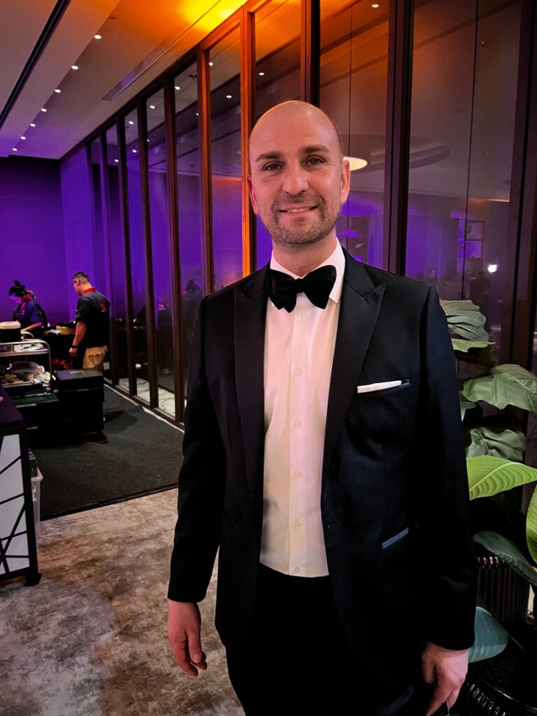 Nun wurde auch das recht anspruchsvolle große Buffet eröffnet, für das Souschef Markus Knabe verantwortlich war. Man buchte ausserdem den griechischen „Star-Koch“ Akis Petretzikis, der griechische Spezialitäten an der Lifestation anbieten sollte. Die Spezialitäten aus Griechenland entpuppte sich als recht leckeres Thunfisch-Tatar. Da ich ihn nicht kannte, fragte ich ihn, was er denn in Athen so macht. „Many Business“ war die Antwort.