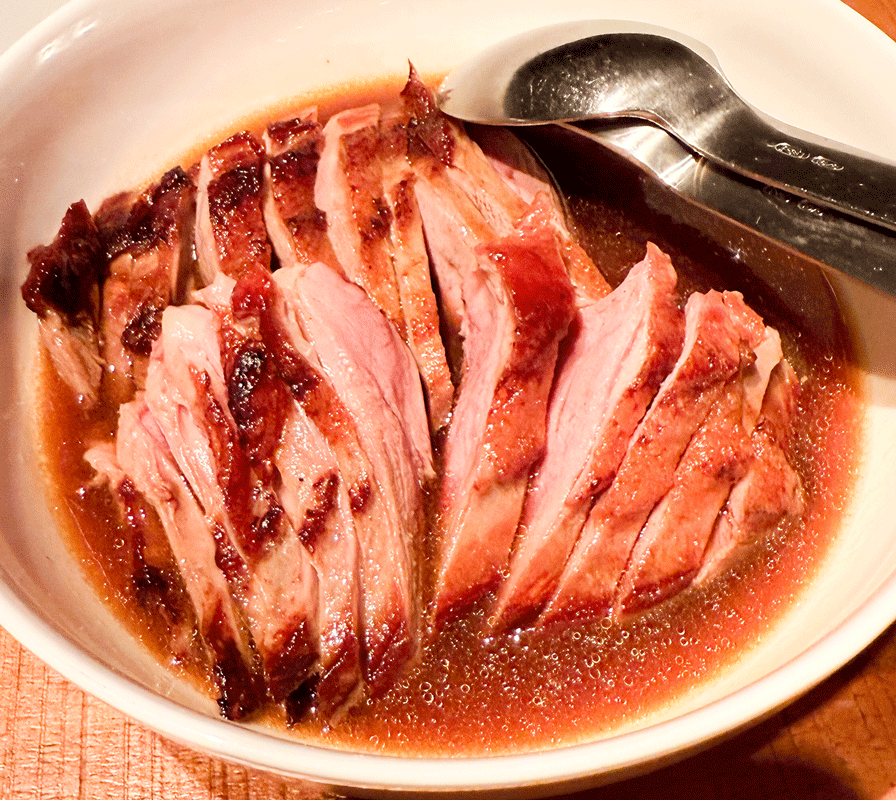 Die Ente wurde am Tisch mit nahezu zeremonieller Ernsthaftigkeit von der Haut befreit.