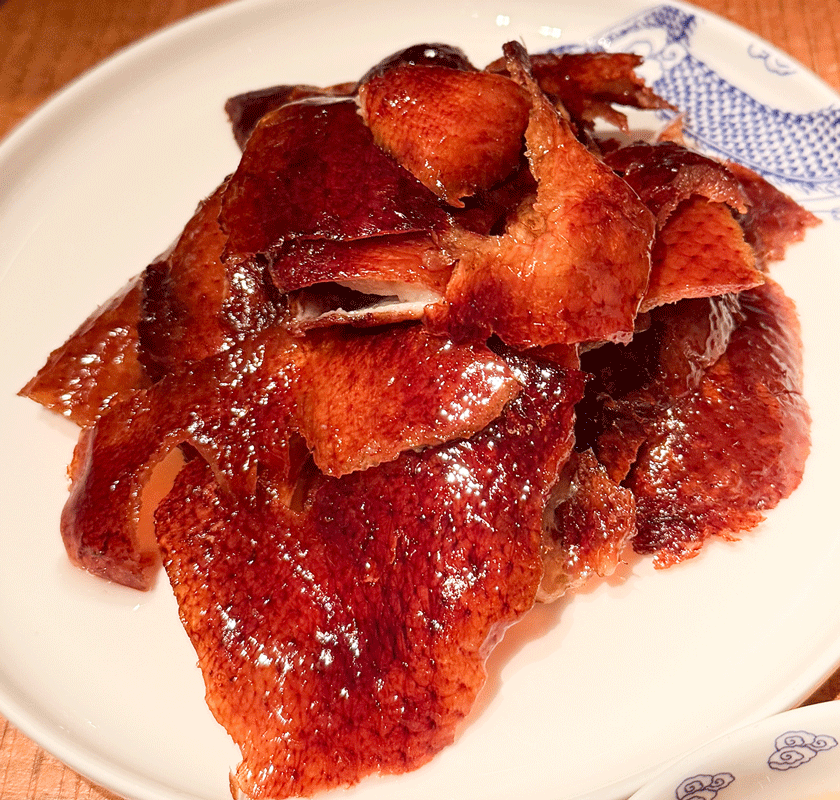 Die Frage nach der Gangfolge des Pekingentenmenüs in China ist nur schwer zu beantworten. Bereits die Anzahl der Gänge variiert von Interpretation zu Interpretation. Die einzige Gemeinsamkeit die wir erlebten, war die Suppe aus Entenkarkassen am Ende des Menüs.