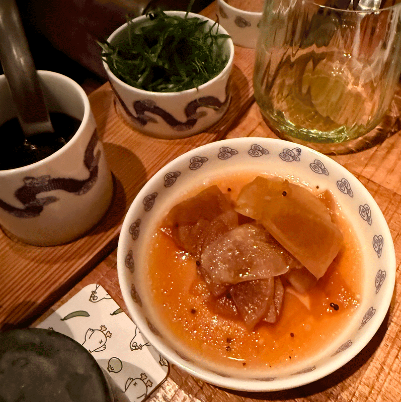 Dazu gesellten sich u.a. eingelegte Gurken mit Knoblauch und Erdnüssen, eingelegter Rettich mit einem Hauch von Reisessig, Ingwer, Lauch.