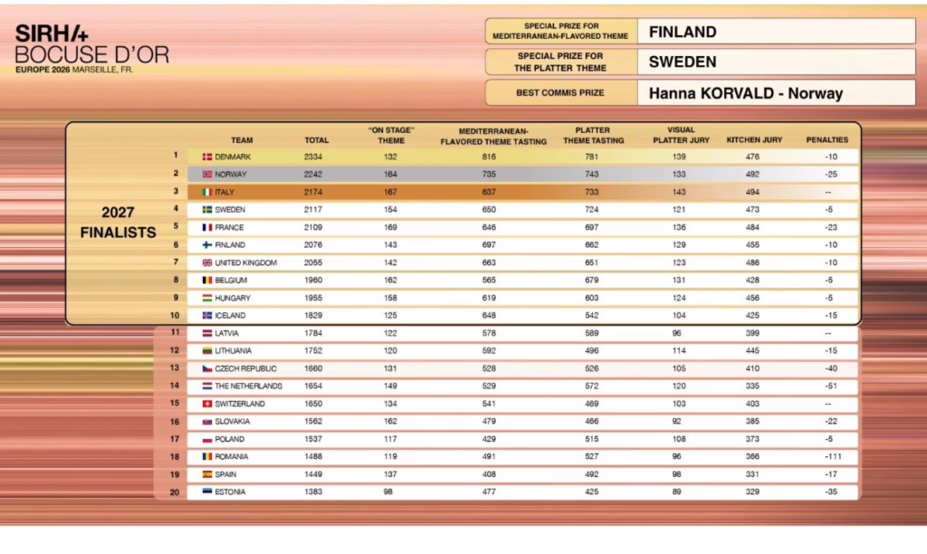 Bocuse dor Europa Resultate 2026 (zum Vergrößern – Bild im neuen Tab öffnen!)